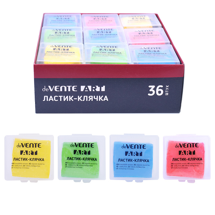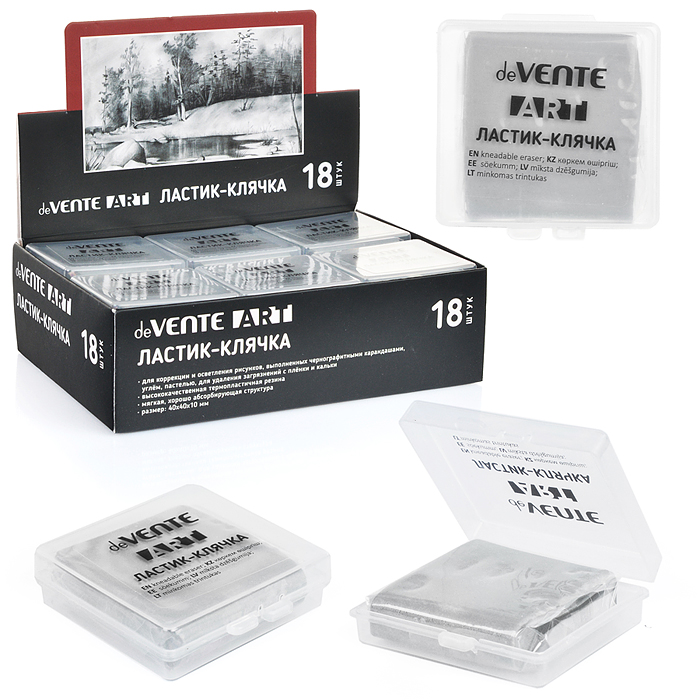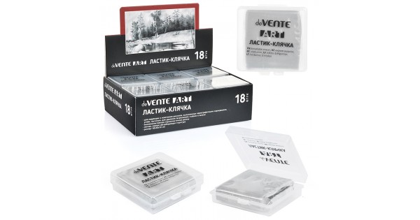 Ластик-клячка "Art" синтетический каучук, прямоугольный, серый, 40x40x10 мм, мягкая текстура.