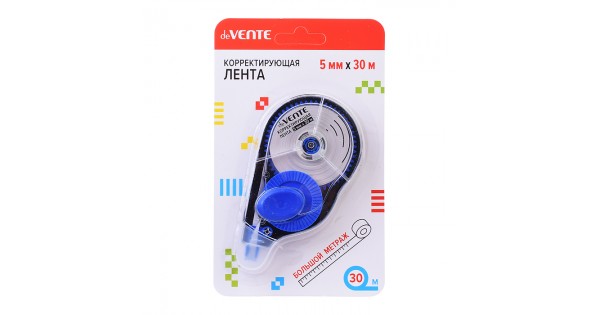 Корректирующая лента 5 ммx30 м, синий полупрозрачный корпус, боковой аппликатор, в картонном блистере