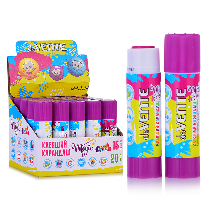 Клеящий карандаш PVA основа "Cosmo Magic" 15 г сиреневый, в картонном дисплее с пластиковым поддоном