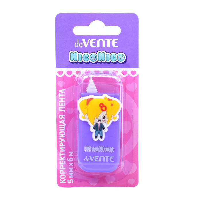 Корректирующая лента "NicoNico" 5 ммx06 м, сиреневый непрозрачный корпус, фронтальный аппликатор.