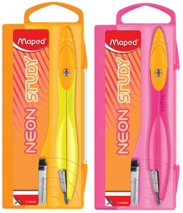 Циркуль из цинкового сплава, с эргономичной головкой, с грифелем, в пластиковом футляре, яркие неоновые цвета