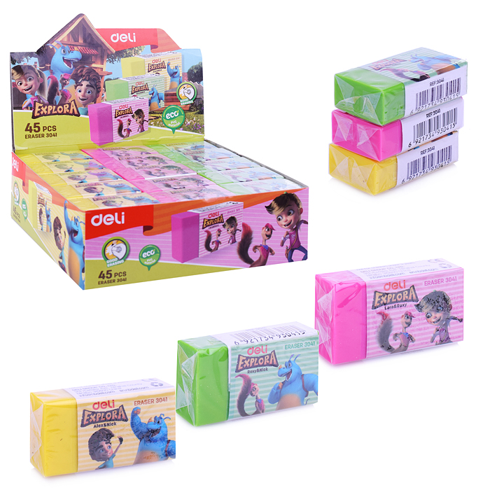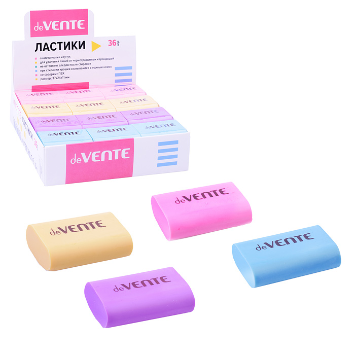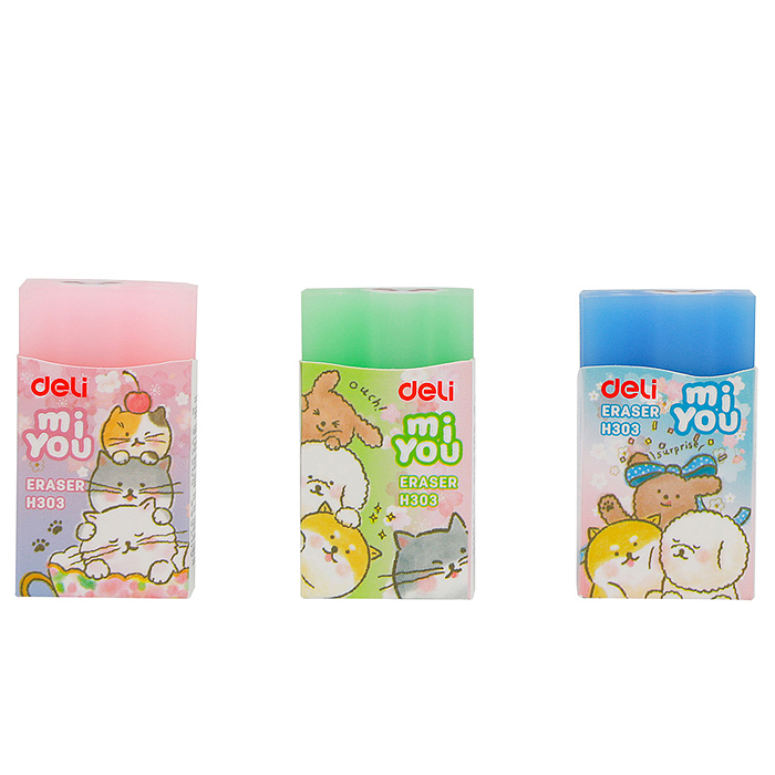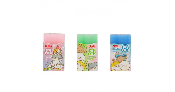 Ластик MiYou мягкий прямоугольный 40x22x12мм, ассорти в индивидуальной упаковке