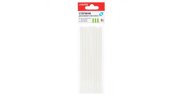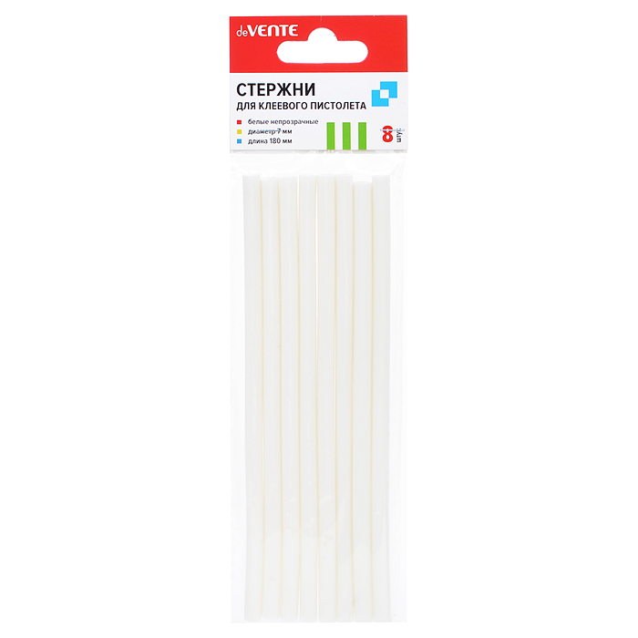 Клеевые стержни Ø 7 мм, непрозрачные белые, длина 180 мм, 8 шт в упаковке c картонным европодвесом
