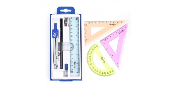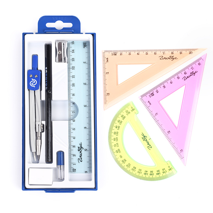 Набор чертежный "Школа" (09 предметов) цвет синий, в пластиковом футляре с блистерным подвесом