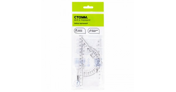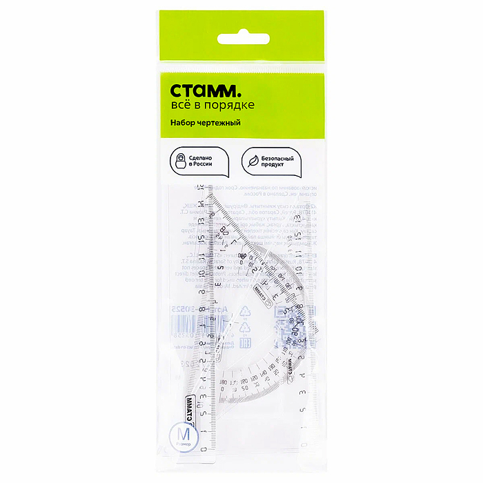 Набор чертежный, размер M (линейка 20см, 2 треугольника, транспортир), прозрачный, бесцветный