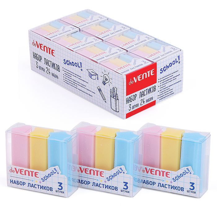 Ластик-клячка "100% Cute" синтетический каучук, прямоугольный, ассорти 4 пастельных цвета