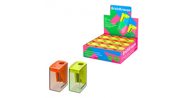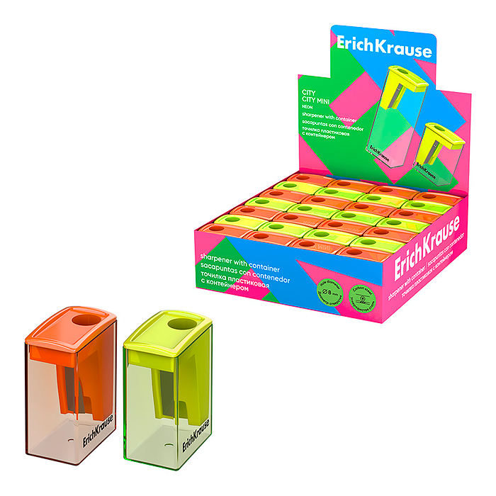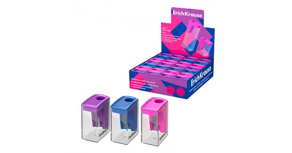 Точилка пластиковая ErichKrause City Mini, Vivid, с контейнером, ассорти