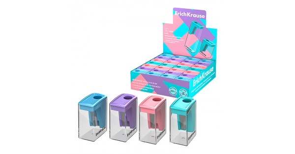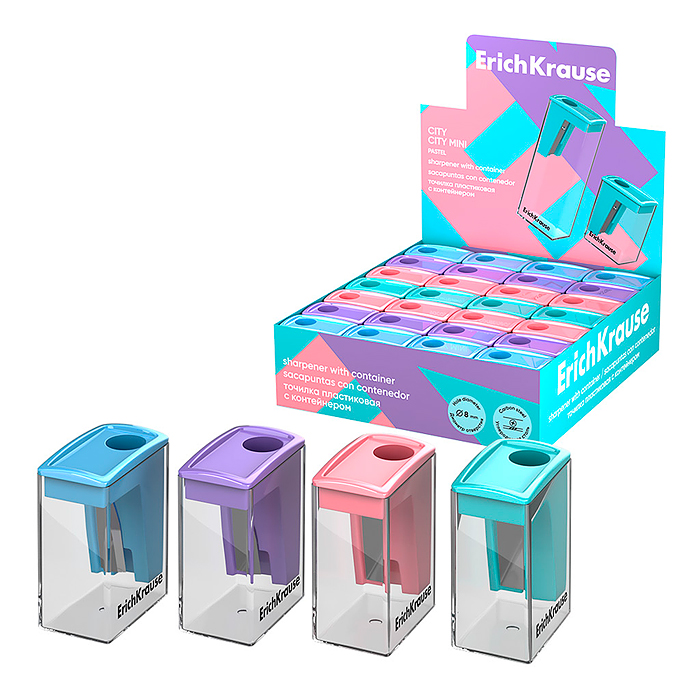 Точилка пластиковая ErichKrause City Mini, Pastel, с контейнером, ассорти