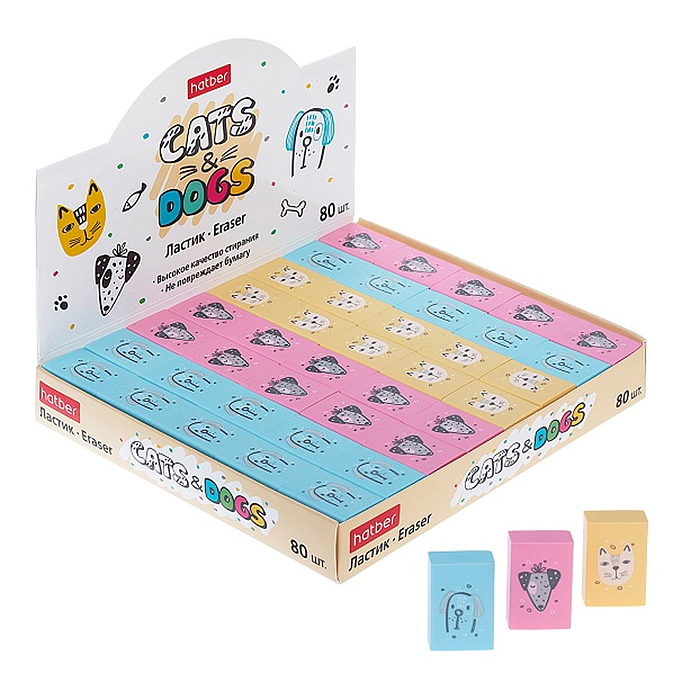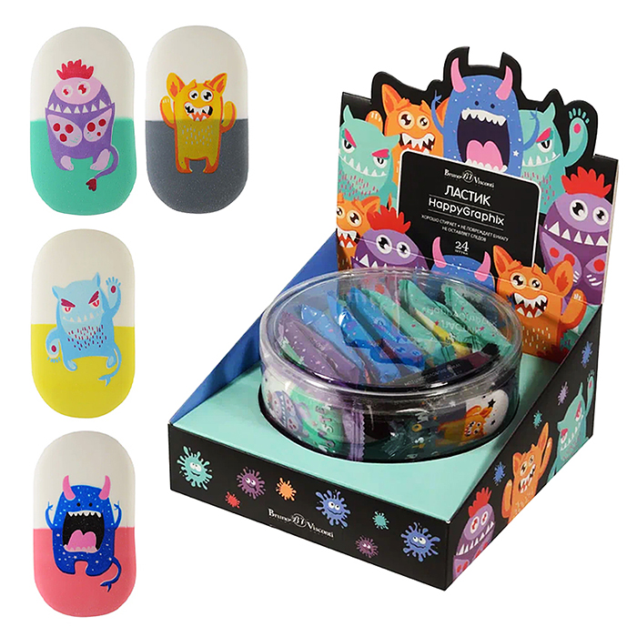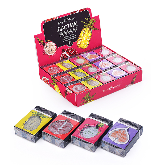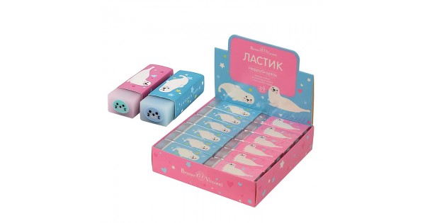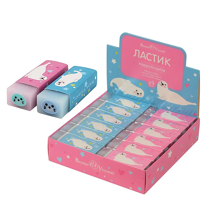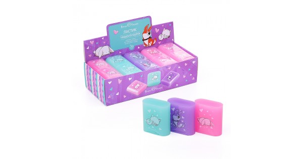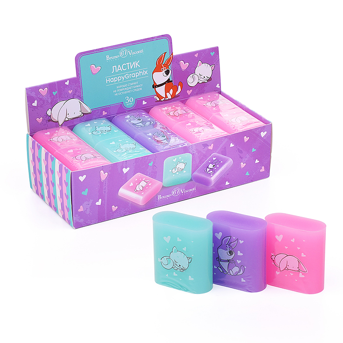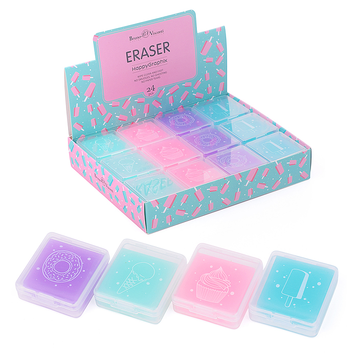 Ластик "HappyGraphix Zefir", квадратный, в пластиковой коробочке, 4 цвета