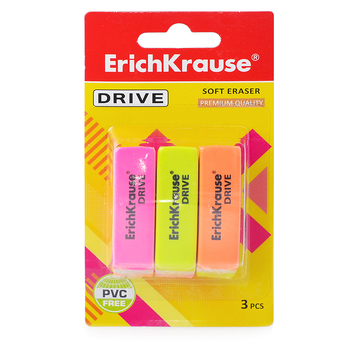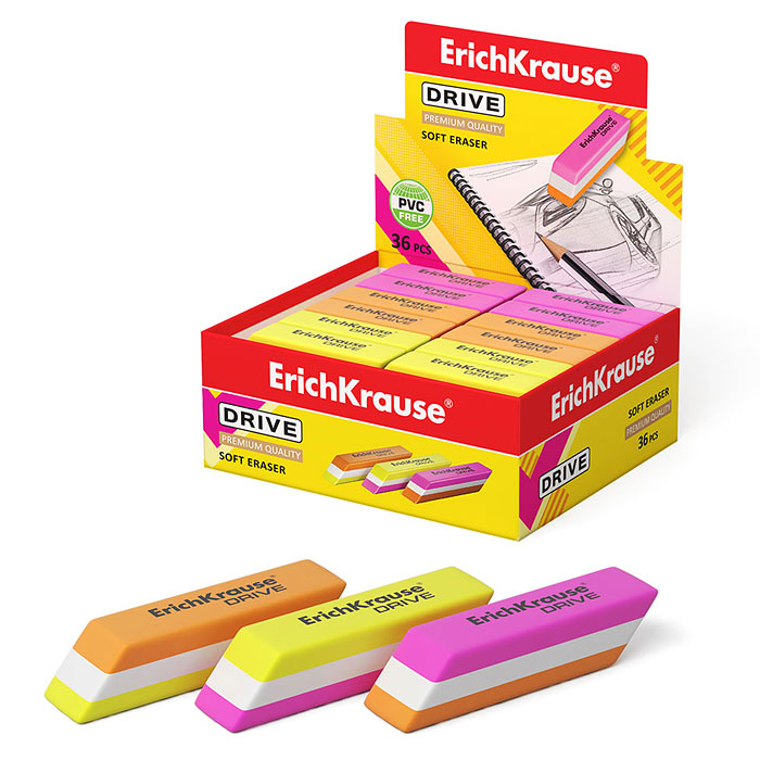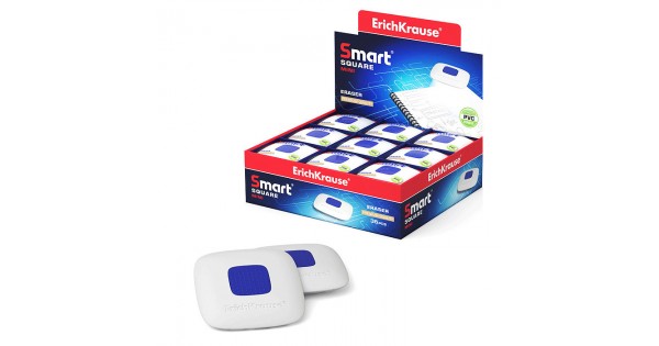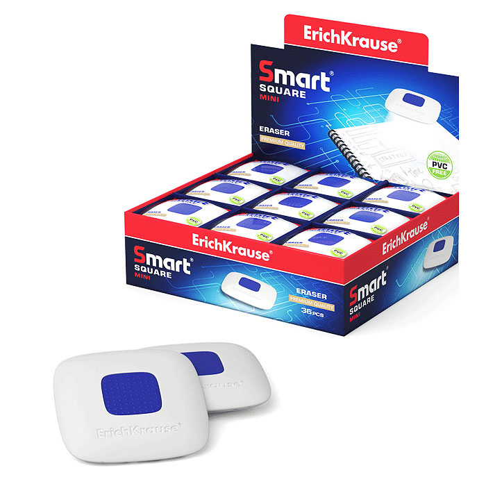 Ластик с пластиковым держателем ErichKrause® Smart Mini Square (в пакете с европодвесом) (в коробке по 36 шт.)