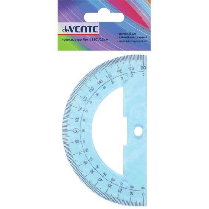 Транспортир "Flex" гибкий 180°/12 см, прозрачный синий, в блистерной упаковке