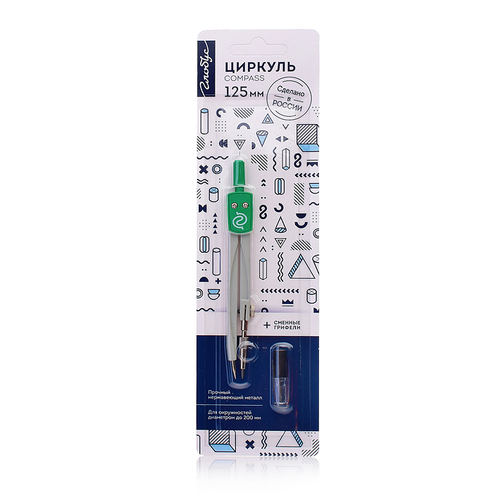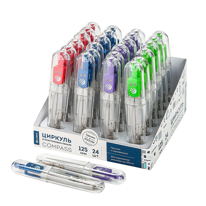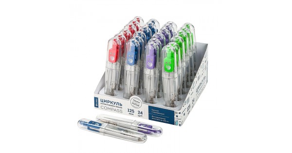 Циркуль металлический "Школа" L-125 мм, футляр, синий, красный, зеленый, фиолетовый