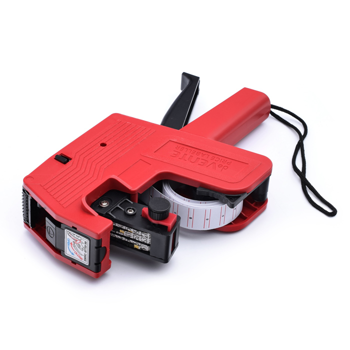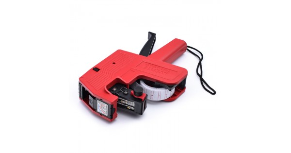 Этикет-пистолет 1-строчный, 8 символов, для прямоугольных этикеток 21x12 мм, красный цвет корпуса