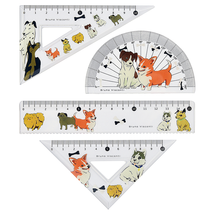 Набор измерительных инструментов (транспортир,линейка,два треугольника) "HappyGraphix. Щеночки"