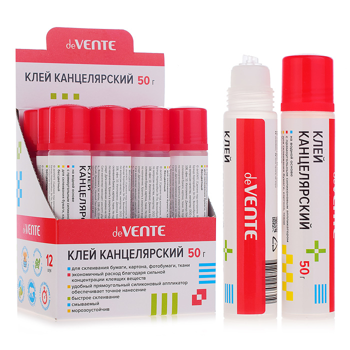 Клей канцелярский, на водной основе, 50 г, в пластиковой бутылочке-карандаше, с силиконовым аппликатором