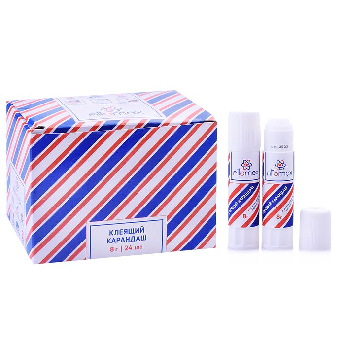 Клеящий карандаш PVA основа "Attomex" 08 г в картонном дисплее с пластиковым поддоном