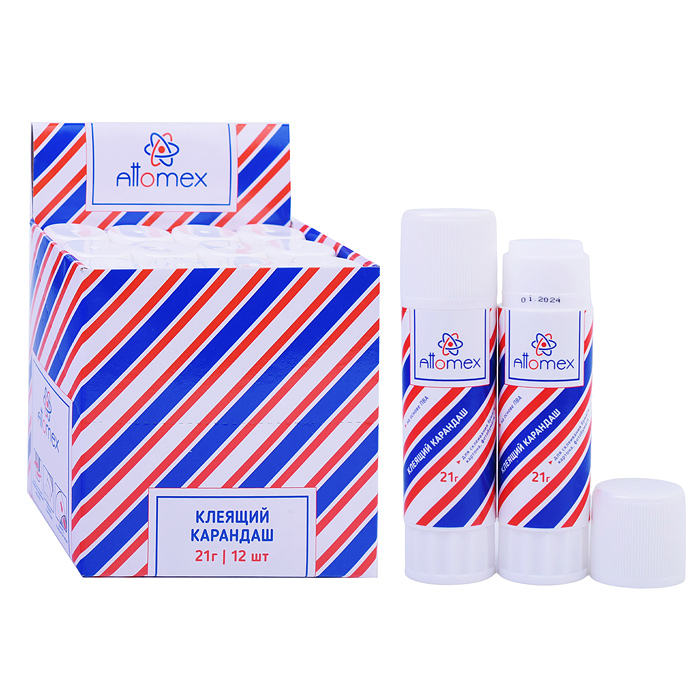 Клеящий карандаш PVA основа "Attomex" 21 г в картонном дисплее с пластиковым поддоном