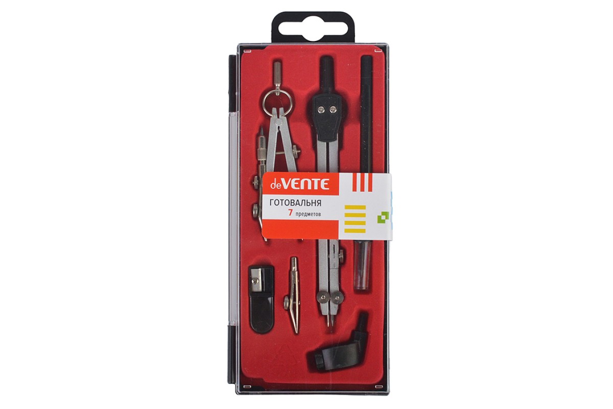 Готовальня (7 предметов) в пластиковом футляре с красным ложементом