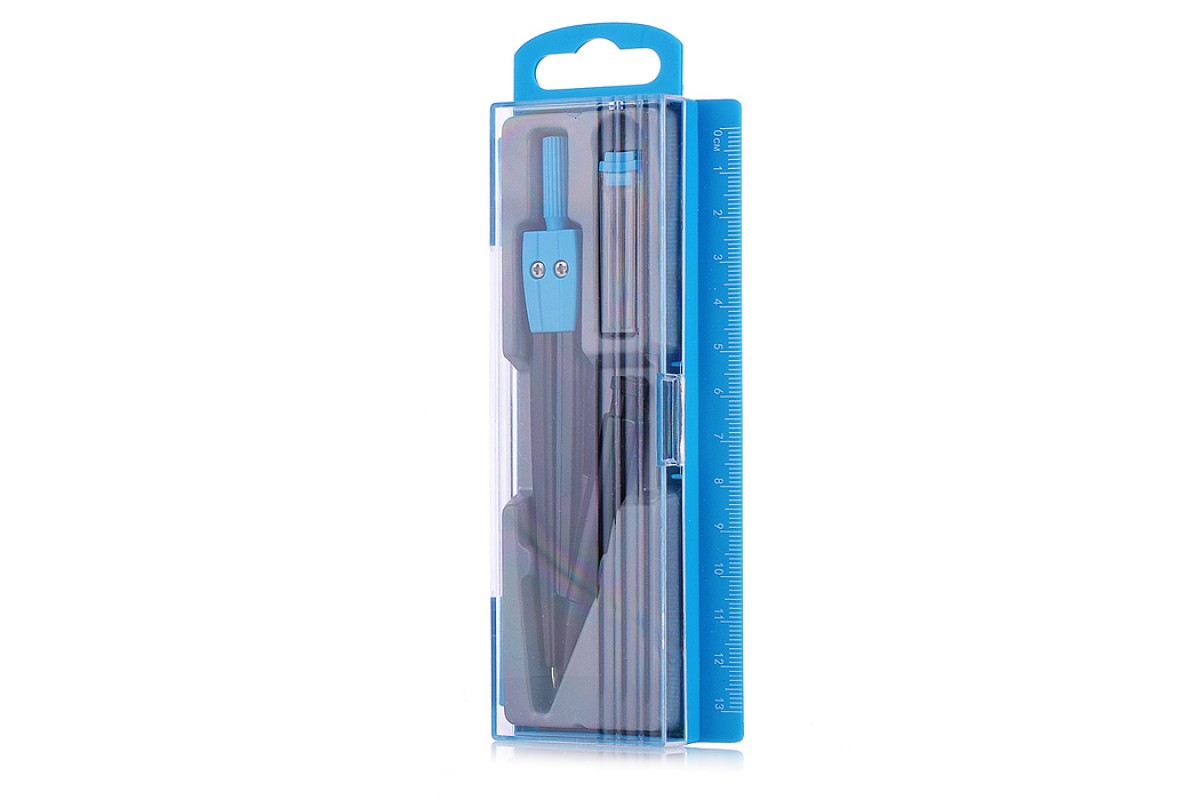 Готовальня в пенале с линейкой, цветным циркулем, 2предмета, синяя