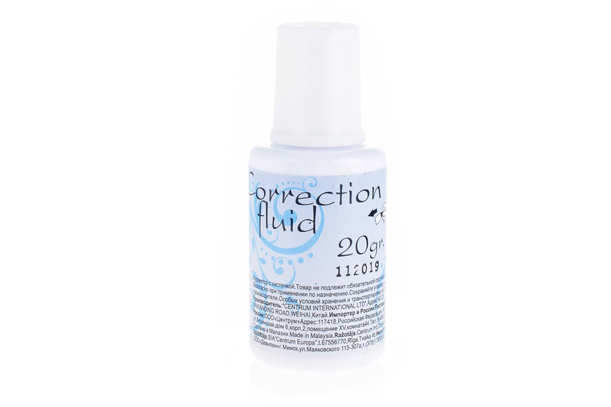 • Корректирующая жидкость представлена в небольшом пластиковом флаконе.