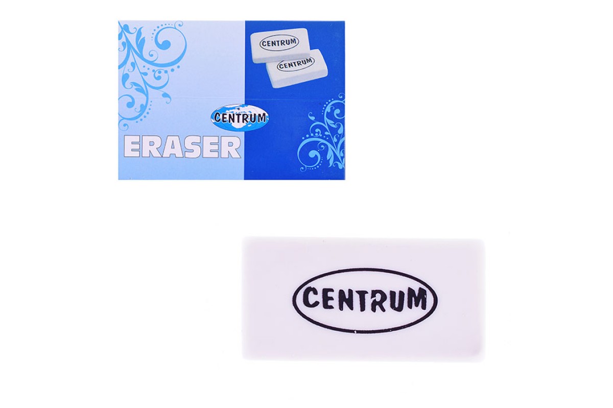Ластик белый прямоугольный из синтетического каучука, размер 40х20х10мм.