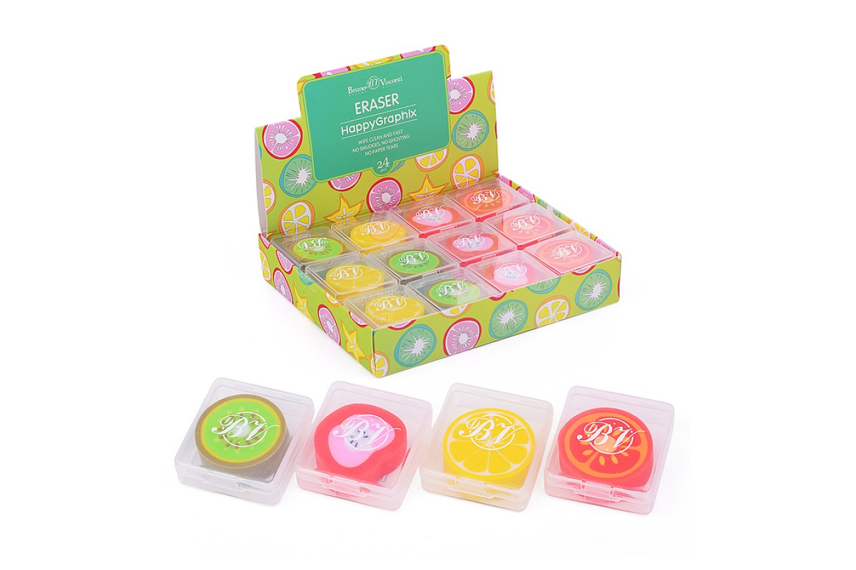 Ластик "HappyGraphix. Фруктовый микс", в пластиковой коробочке, 4 вида