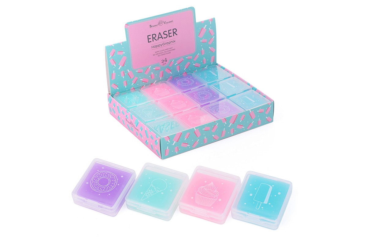 Ластик "HappyGraphix Zefir", квадратный, в пластиковой коробочке, 4 цвета