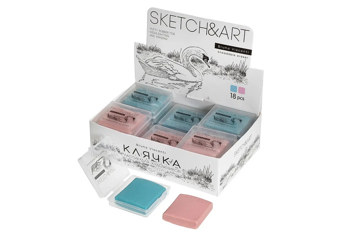 Ластик-клячка художественная "Sketch&art" розовый/голубой, в пластиковой коробочке