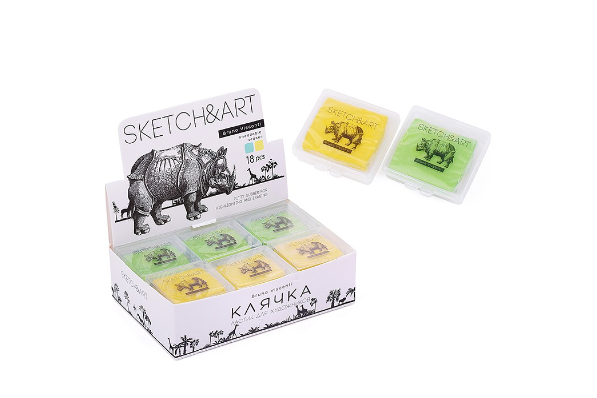 Ластик-клячка художественный "Sketch&Art" желтый/зеленый, в пластиковой коробочке