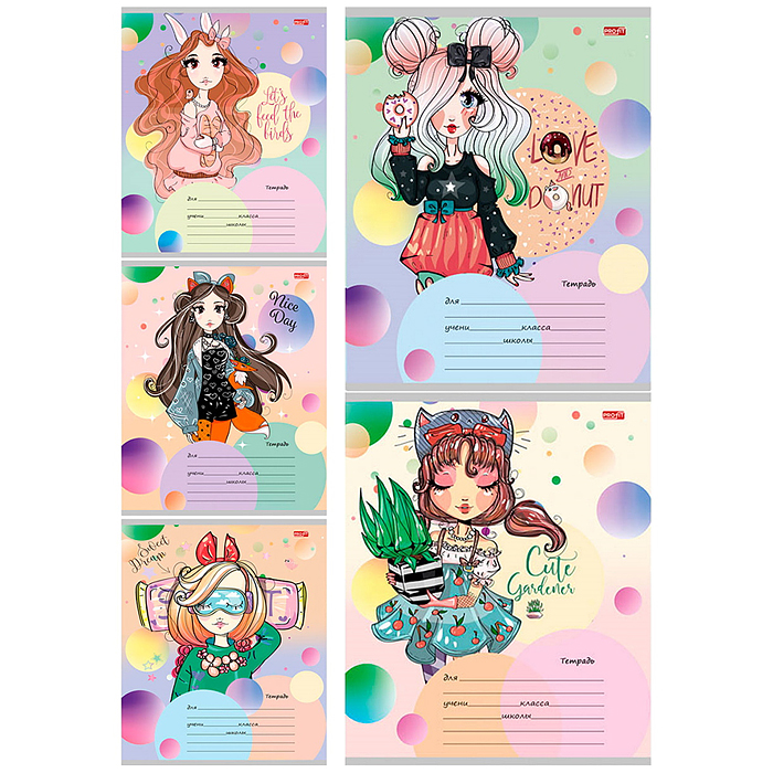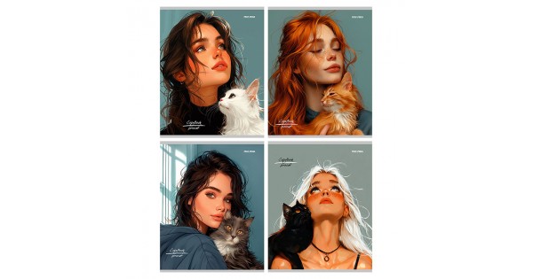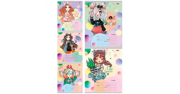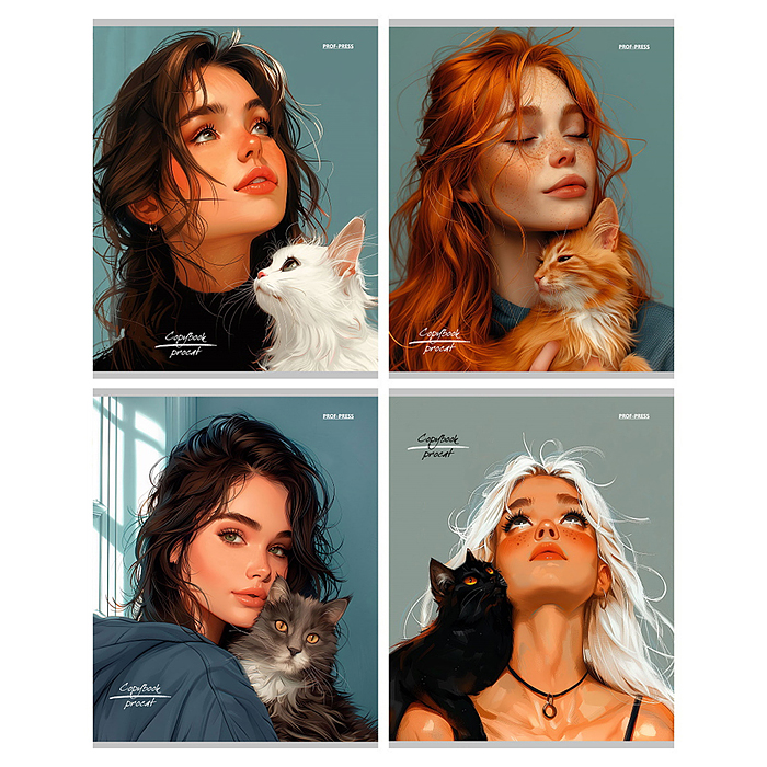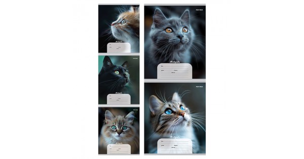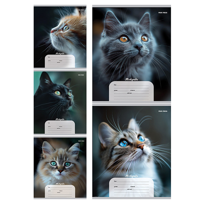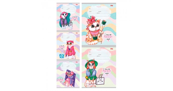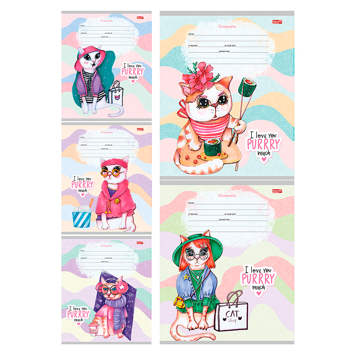 Тетрадь 12л. дополнительная косая линия "Котики в нарядах" 5 диз.в спайке