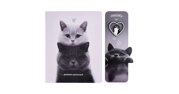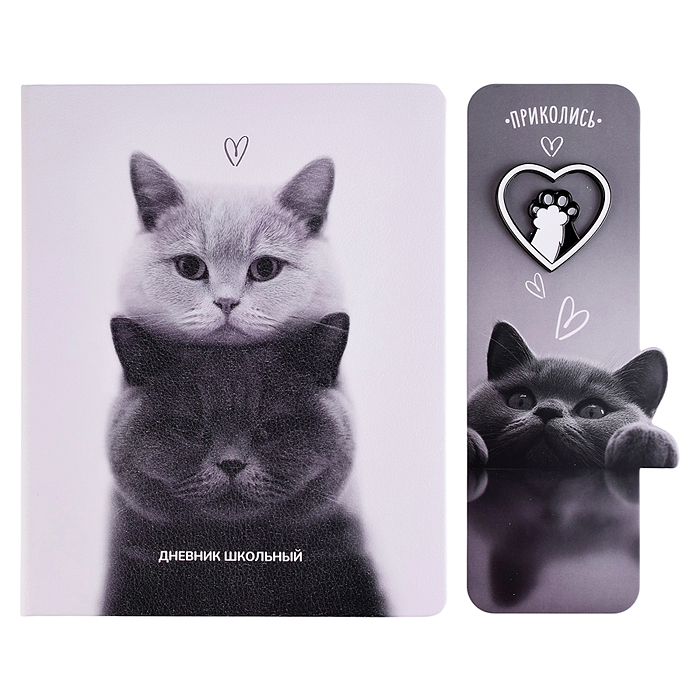 Дневник 1-11 кл. "Два кота" кожзам: А5+; твёрдый переплёт, со значком-пином
