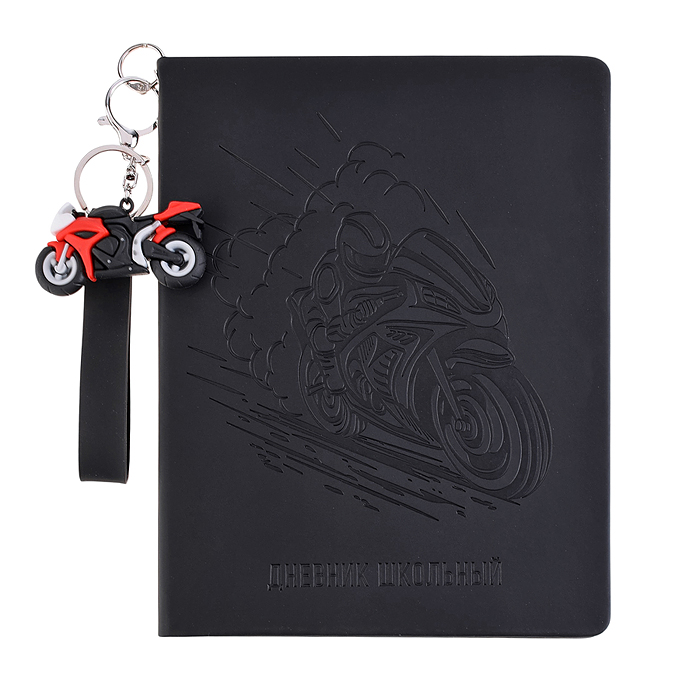 Дневник 1-11 кл. "Мотоциклист" кожзам: А5+; 48 листов, твёрдый переплёт, с брелоком