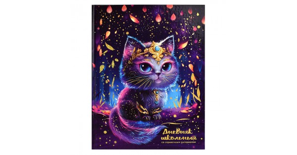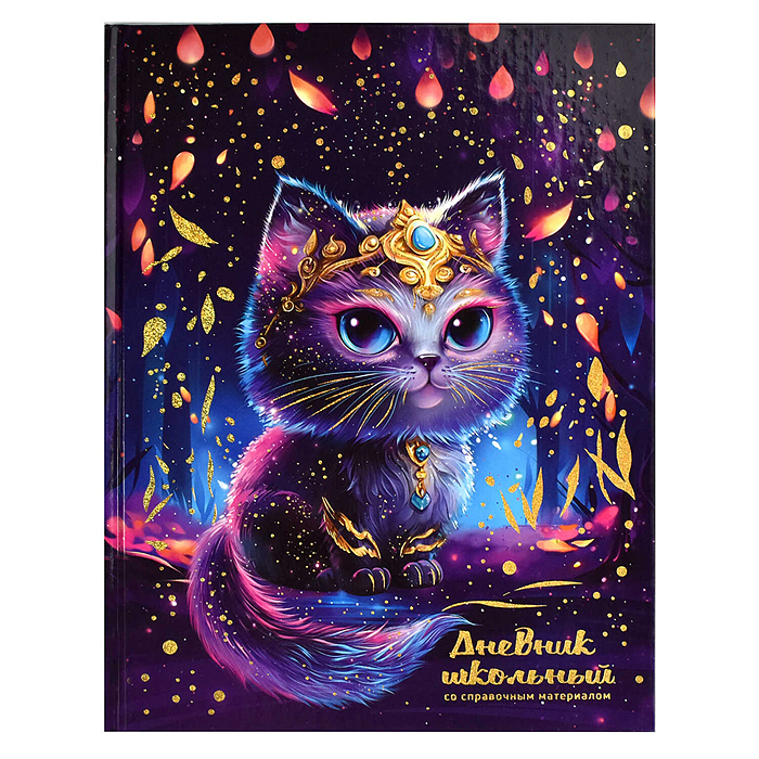 Дневник 1-11кл. "Волшебный кот" твёрдый переплёт, А5+, 48 л., голографическая фольга