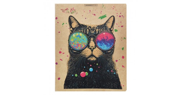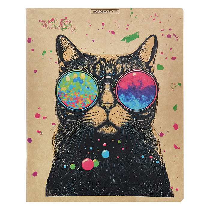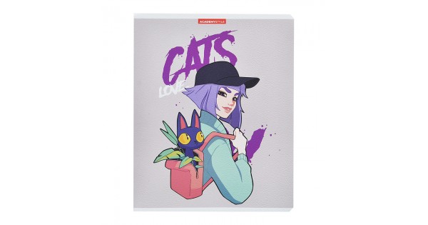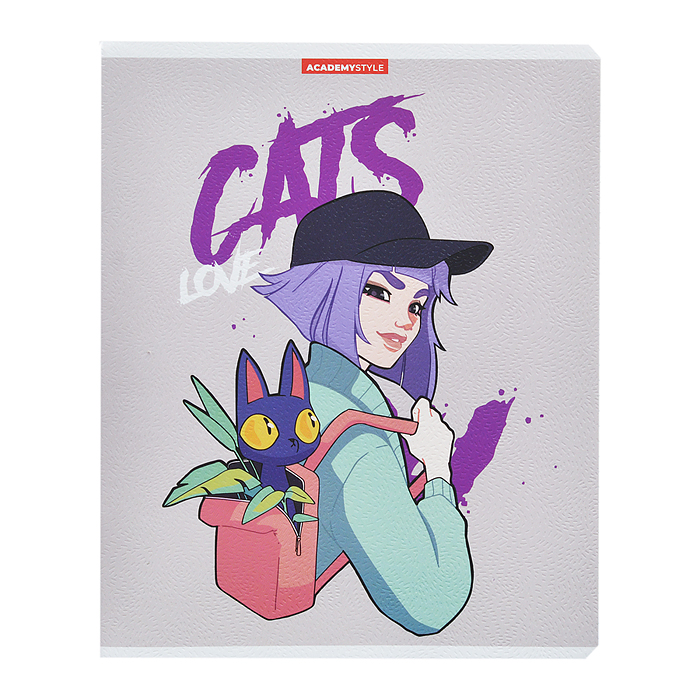 Тетрадь 48л. клетка на скобе "Жизнь кота"отделка выб УФ двойной, конгрев