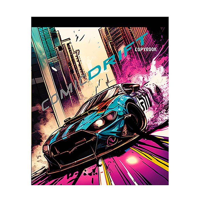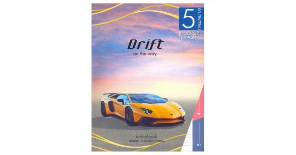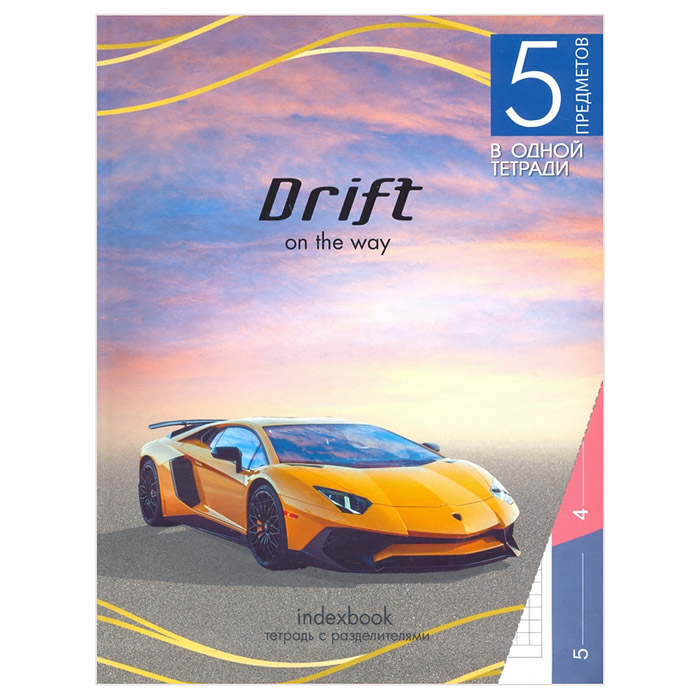 Тетрадь 128 л, клетка А5 "Желтый спорткар" 5 разд, интегр.обл, дв.цв.,