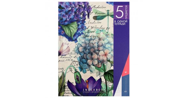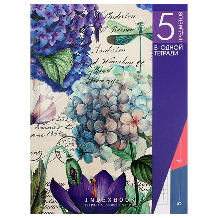 Тетрадь 128 л, А5, клетка "Цветочное настроение" 5 разд, интегр.обл, дв.цв.,