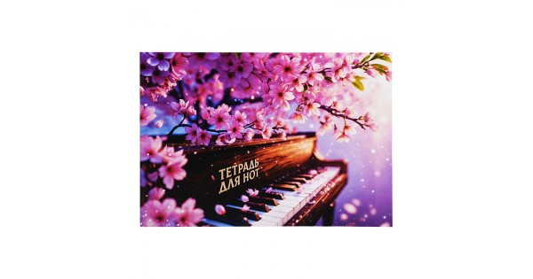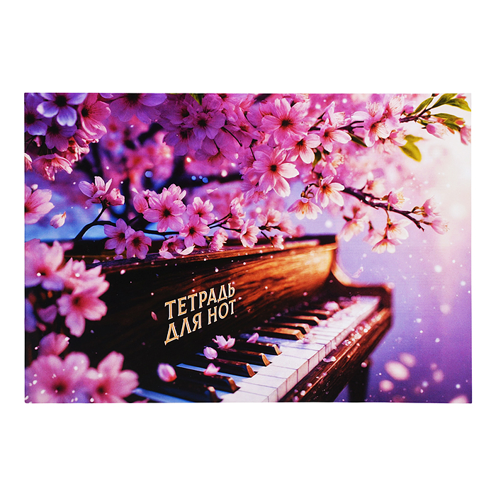 Тетрадь для нот 12 л. "Рояль и Сакура" А4, белый офсет, мягкий переплёт (2 скобы)