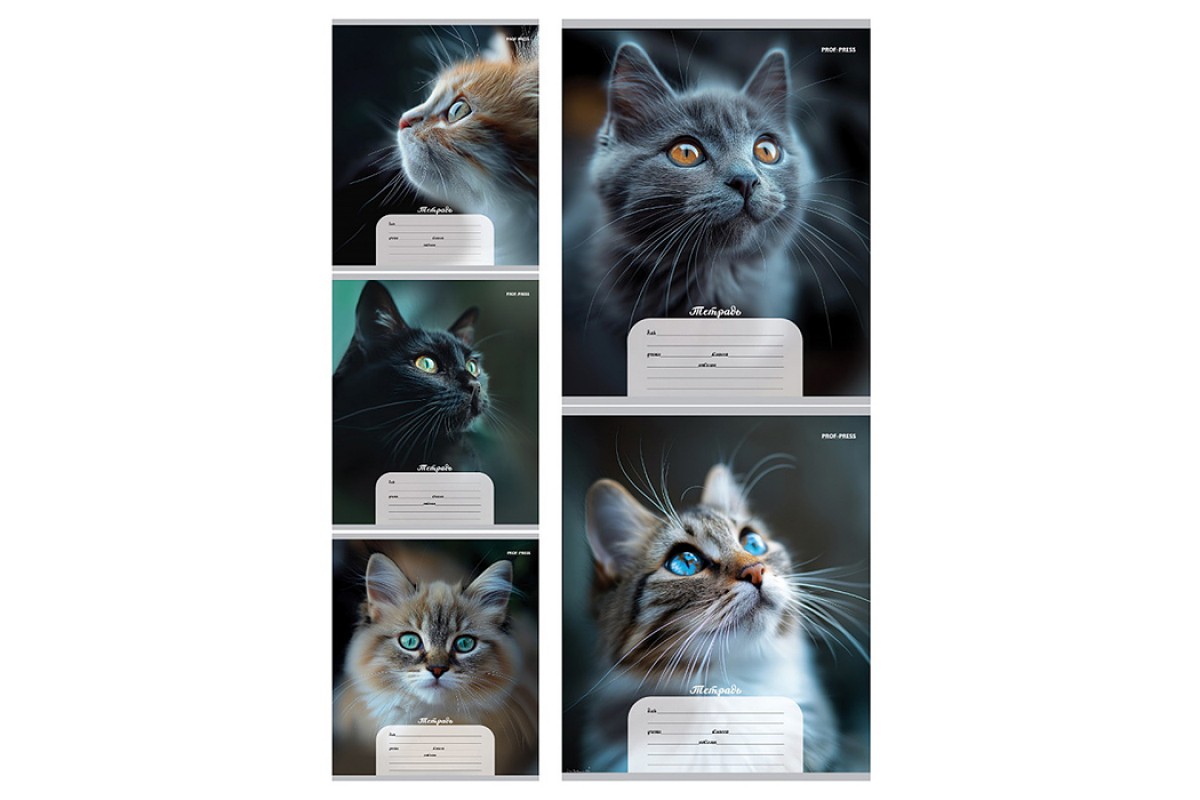 Тетрадь 12л. дополнительная косая линия "Портретные фото котов"