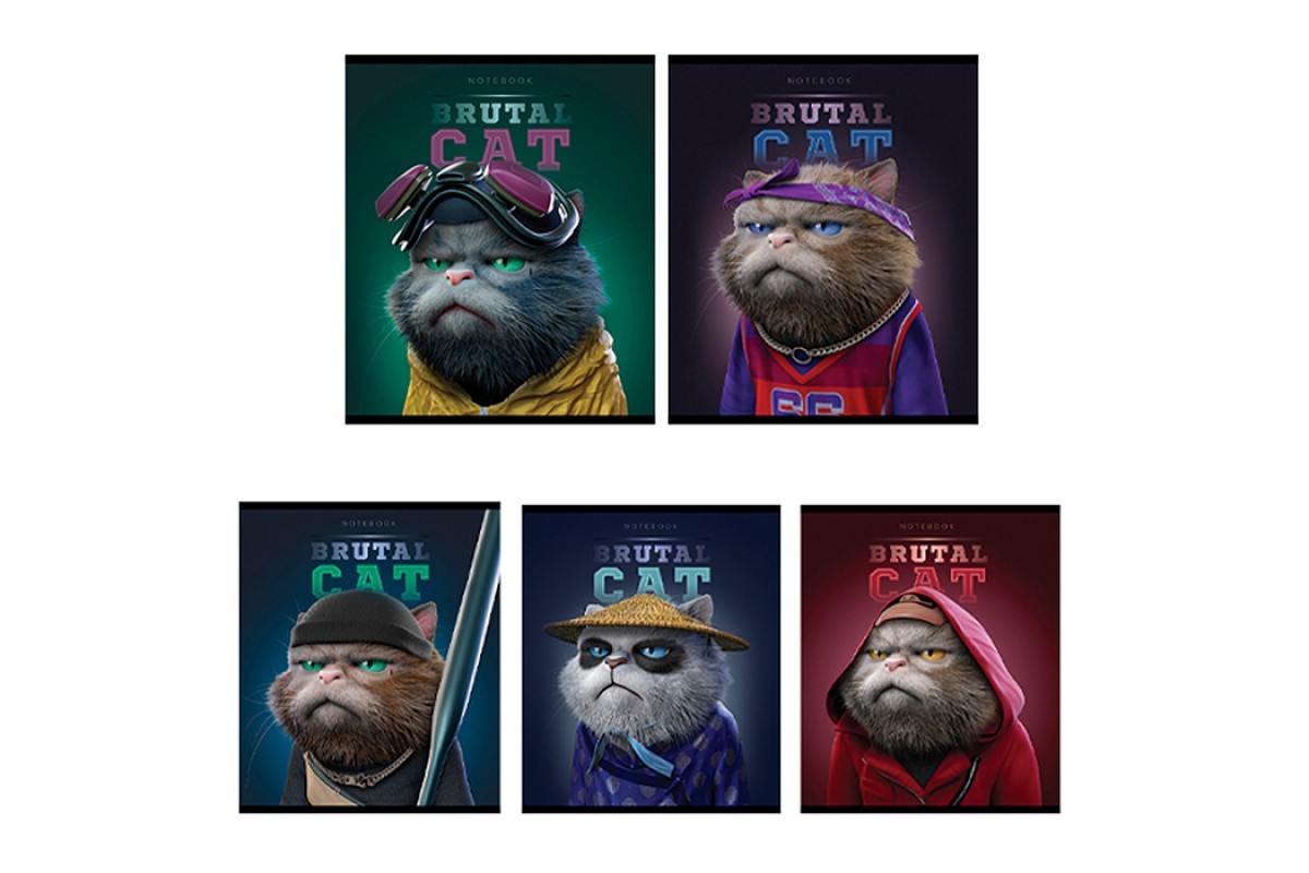 Тетрадь 48л А5 клетка S "Брутальные коты" Премиум