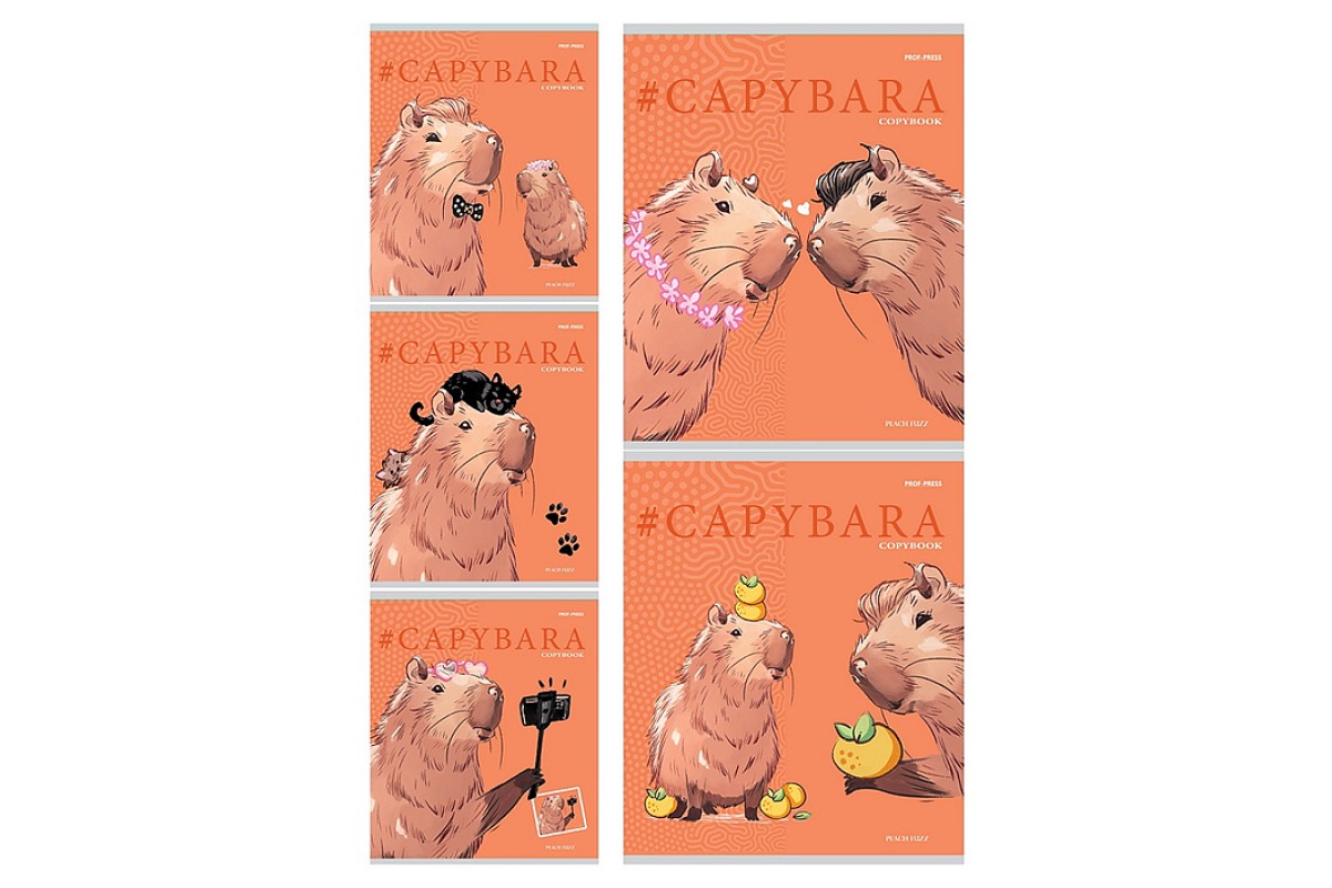 Тетрадь 48л. клетка "Капибара краш" цветная мелованная обложка