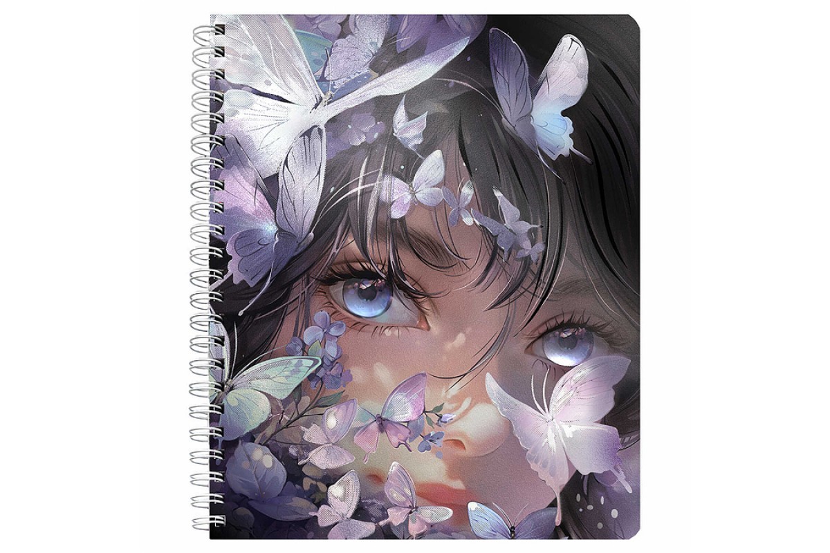 Тетрадь 80 л, клетка "Девушка с бабочками" А5+, гребень