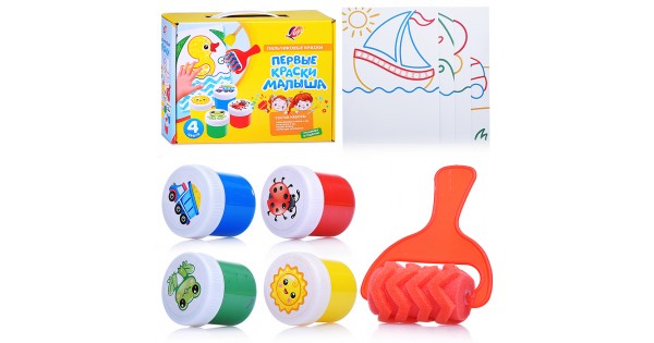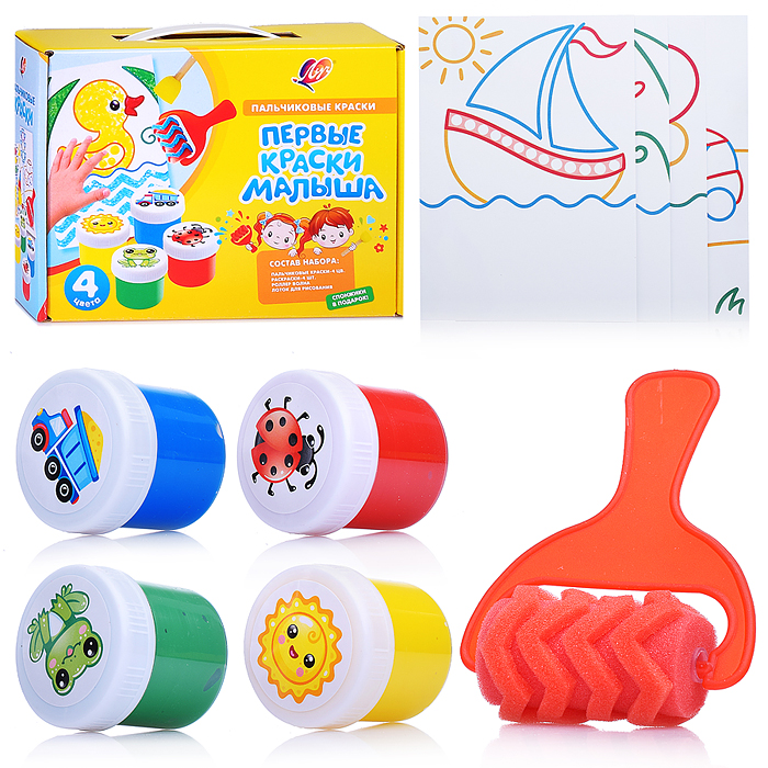 Набор пальчиковых красок "Кроха" 4 цв. с аксессуарами "Первые краски малыша"