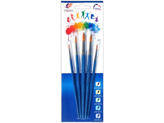 Набор из 5 кистей "Классика цвета" синтетика (кругл.1, 2, 3, 4, 5)