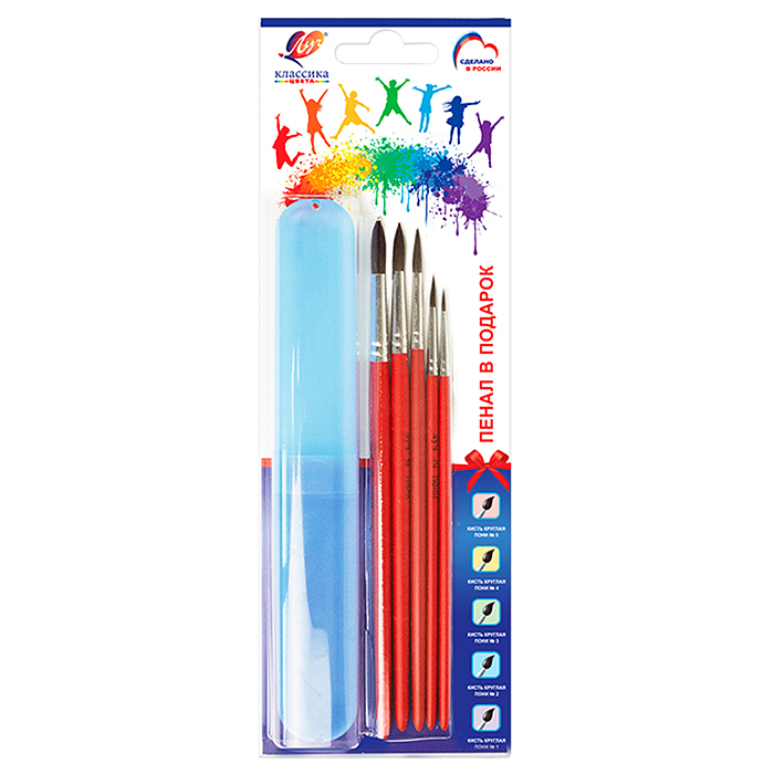 Набор из 5 кистей "Классика цвета" пони (кругл.1, 2, 3, 4, 5) с пеналом