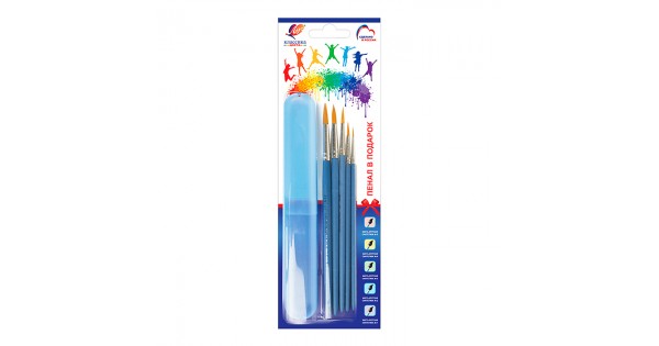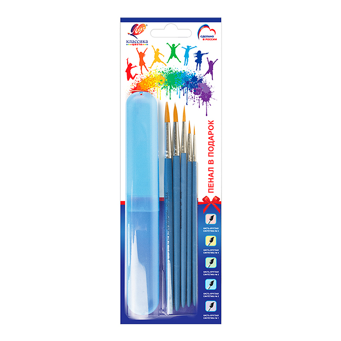 Набор из 5 кистей "Классика цвета" синтетика (кругл.1, 2, 3, 4, 5) с пеналом