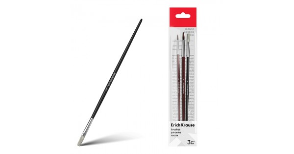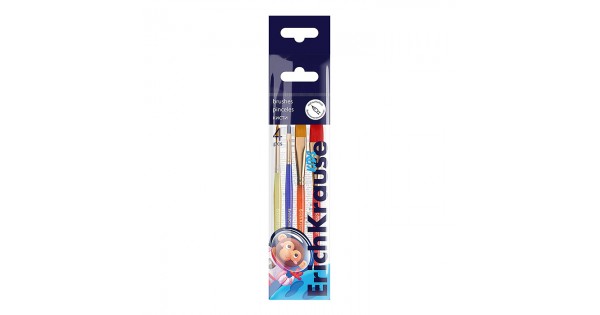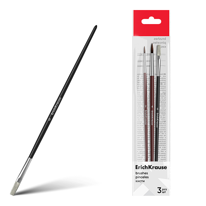 Кисти для акварели и гуаши, пони и щетина, 3 штуки, (в полибеге с европодвесом)