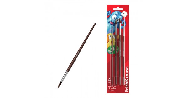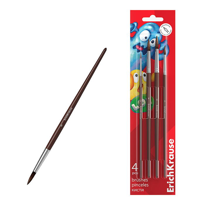 Кисти "Jolly Friends" для акварели и гуаши, пони, 4 штуки (в блистере)