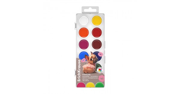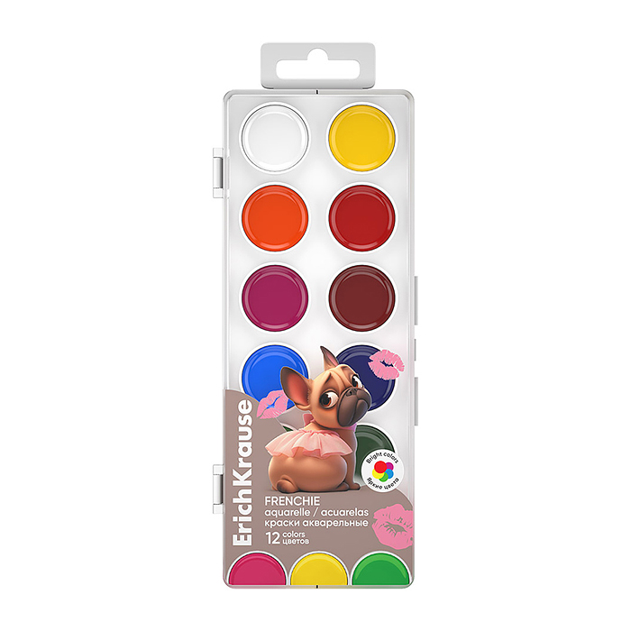 Краски акварельные 12 цветов Frenchie (в пластиковой коробке с европодвесом)