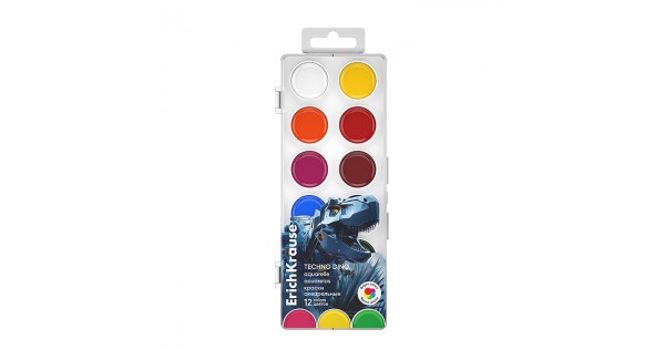 Краски акварельные 12 цветов Techno Dino (в пластиковой коробке с европодвесом)