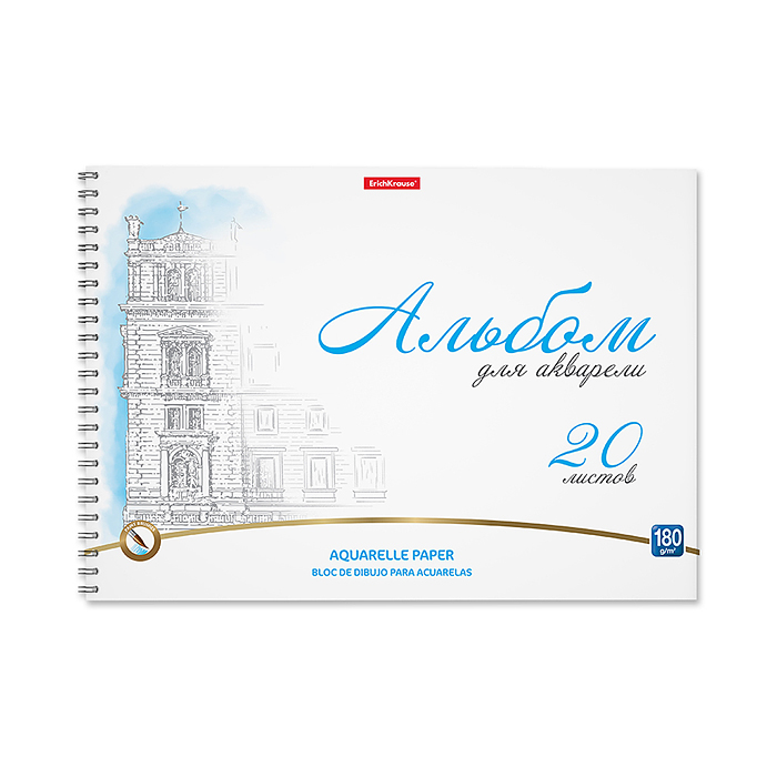Альбом для рисования 20л. с бумагой для акварели 180 г на спирали Towers, А4,
